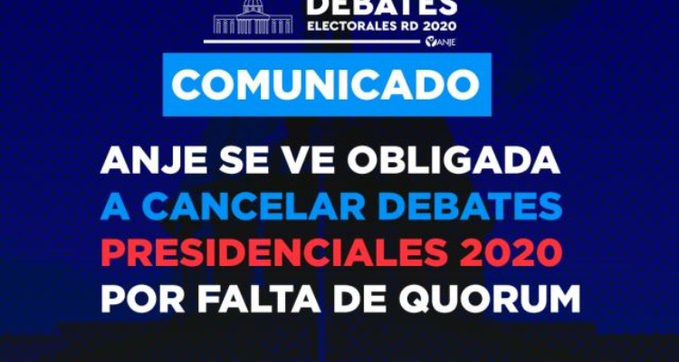 «A pesar de los esfuerzos y acciones desplegadas, es con gran pesar que nos vemos obligados a cancelar la realización de los Debates Electorales a nivel presidencial, por no haber quorum por parte de todos los candidatos presidenciales invitados para poder llevar a cabo la iniciativa. Sobre el debate a nivel senatorial ofreceremos detalles más adelante», señala ANJE.