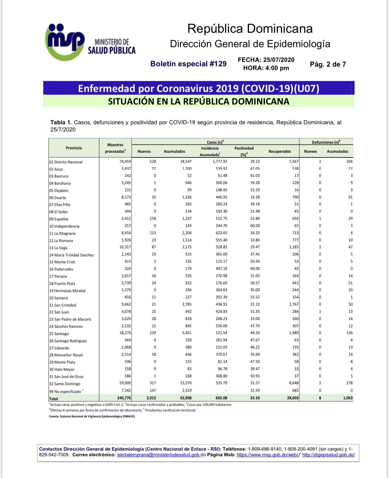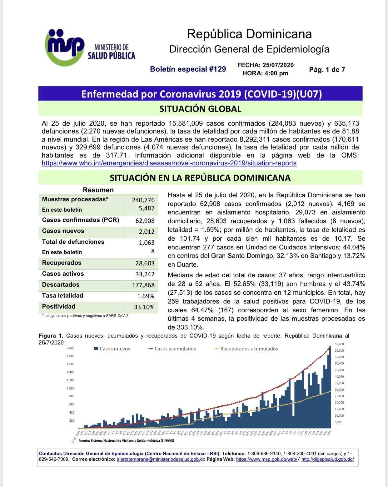 BOLETÍN #129 SITUACIÓN CORONAVIRUS REPÚBLICA DOMINICANA