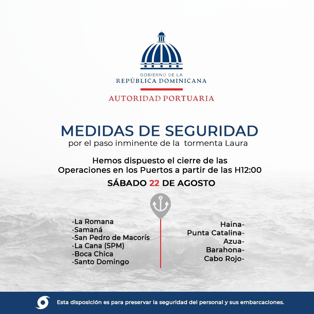 Autoridad Portuaria suspende de manera temporal operaciones en varios puertos debido al paso de la Tormenta Tropical Laura