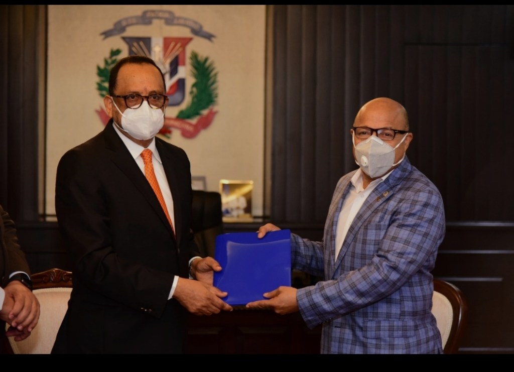 El Consultor Jurídico del Poder Ejecutivo, Antoliano Peralta Romero y el subconsultor, Pedro Montilla Castillo entregaron la pieza legislativa al presidente de la Cámara de Diputados, Alfredo Pacheco en representación del presidente Luis Abinader.