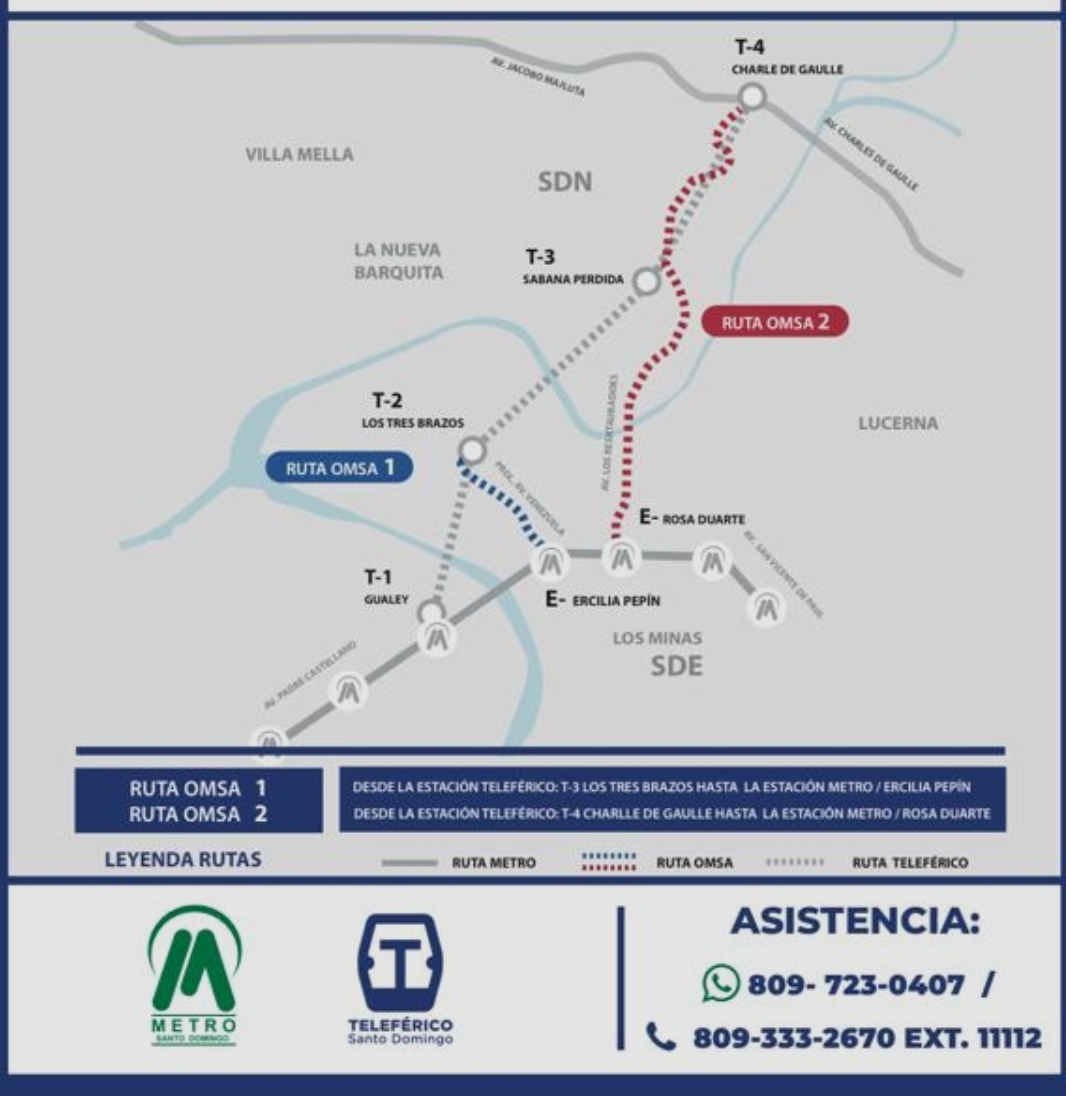 De igual modo, transportarán a los pasajeros que quieran trasladarse desde las estaciones Sabana Perdida y Charles de Gaulle del Teleférico hasta la Rosa Duarte del Metro de Santo Domingo.