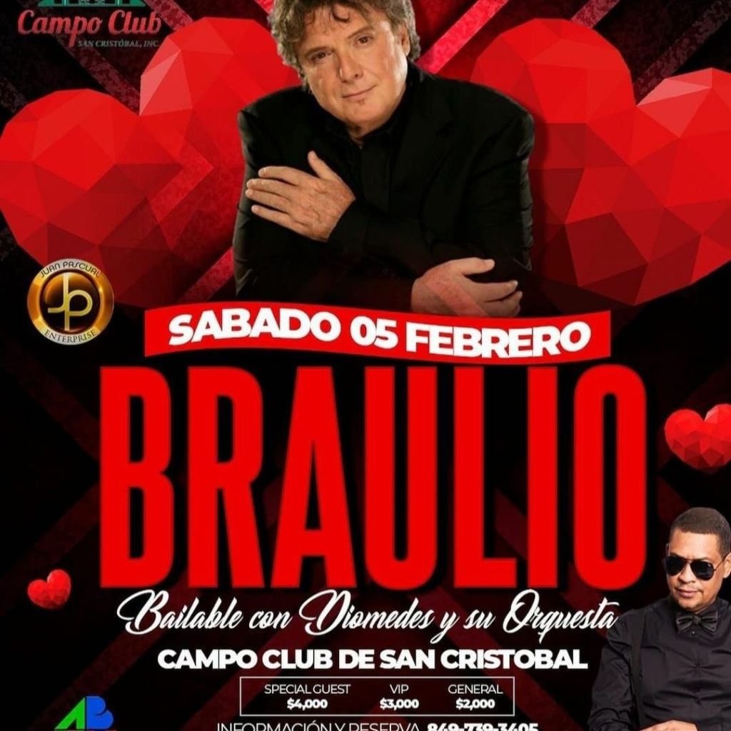 Braulio, quien es uno de los artistas extranjeros que goza de mayor popularidad en el país, actuará por primera vez en el Campo Club de San Cristóbal, en un concierto inolvidable que iniciará a las 9 de la noche.