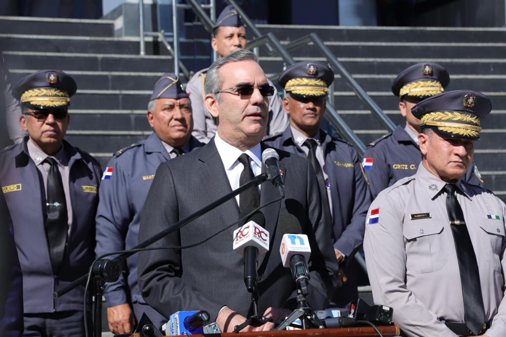 El presidente Abinader habló con los periodistas a su salida de la reunión del Consejo Superior Policial en la sede principal de la Policía Nacional.