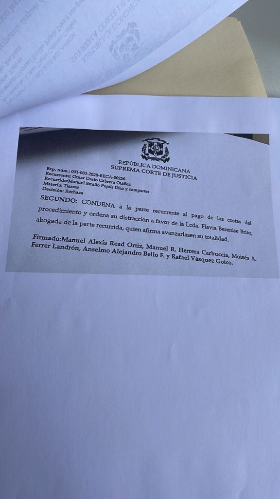 El proceso judicial recorrió las cortes de Primera Instancia, Apelación y llegó hasta la Suprema Corte de Justicia, donde los jueces Manuel Alexis Read Ortiz, Manuel Herrera Carbuccia, Moisés Ferrer Landron, Anselmo Bello y Rafael Vásquez Goico ratificaron las decisiones de los anteriores tribunales que habían ordenado a Cabrera Otañez la demolición de esa estructura que había construido de manera ilegal en el área común del edificio.