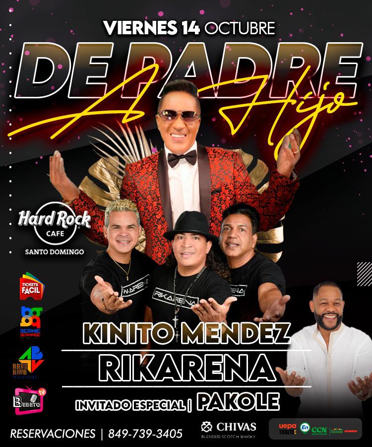 SANTO DOMINGO. -Luego de una ausencia de más de 10 años sin hacer presencia en los escenarios de la República Dominicana, regresa el grupo Rikarena para presentarse este viernes 14 en Hard Rock Café Santo Domingo y lo harán junto a su padre y creador musical Kinito Méndez en un espectáculo que ha sido denominado “De Padre a Hijo”.