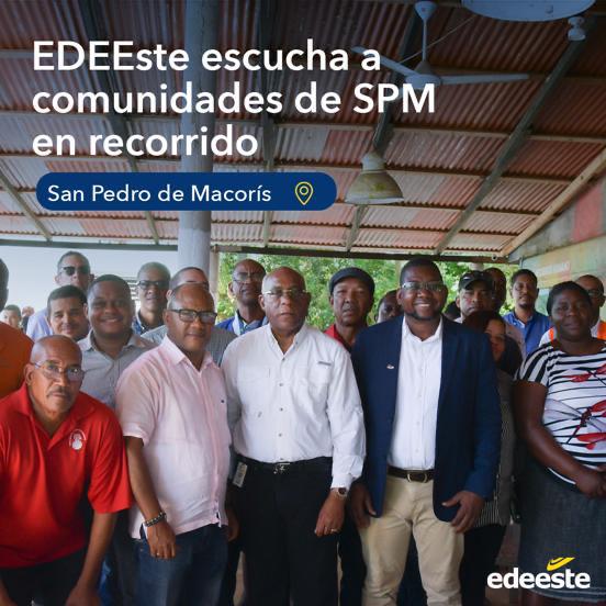 San Pedro de Macorís.- Una delegación encabezada por el gerente general de la Empresa Distribuidora de Electricidad del Este (Edeeste), ingeniero Andrés Portes, desarrolló un amplio recorrido de trabajo por los municipios de esta provincia, donde conversó con representantes de 81 juntas de vecinos sobre sus necesidades en materia energética.