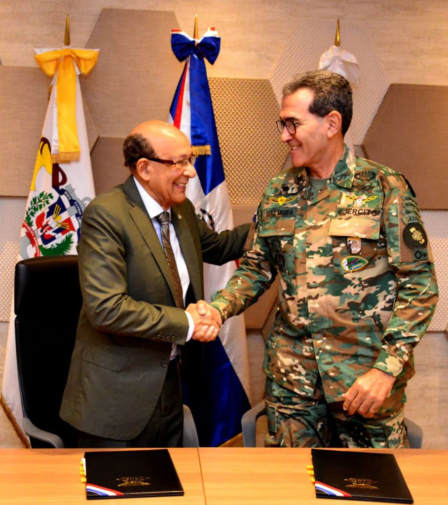 En la firma del acuerdo también estuvieron presentes el General de Brigada Luis Díaz Morfa, ERD., Director de los servicios médicos del Cuerpo de Seguridad Presidencial (CUSEP), y el General de Brigada Rafael Antonio Carrasco Paulino, ERD., Director General del Instituto Cartográfico Militar.