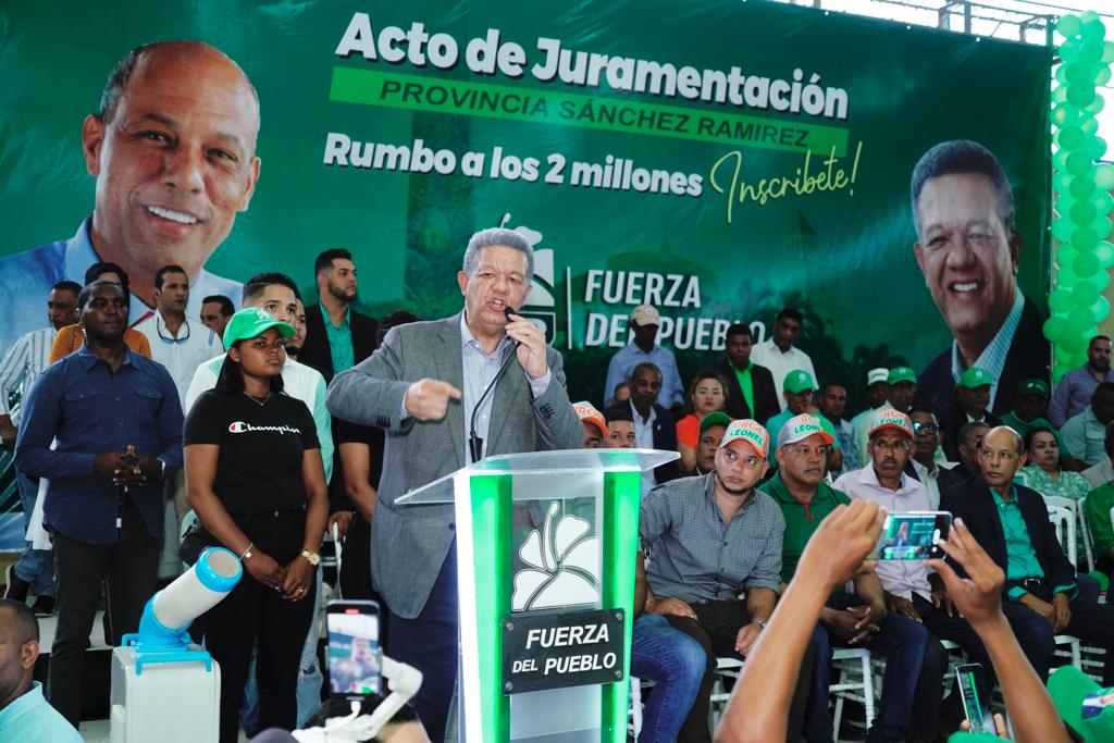 Sánchez Ramírez, Cotuí.- Tras juramentar en la Fuerza del Pueblo a un importante grupo de dirigentes políticos de diferentes organizaciones, Leonel Fernández aseguró estar consolidando su propia fuerza en alianza con el pueblo dominicano.