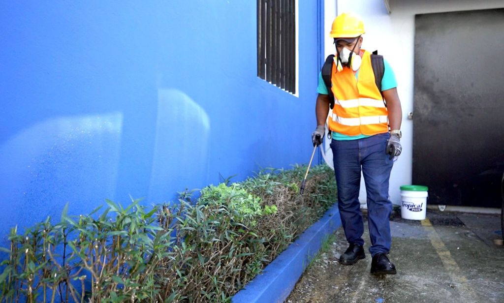 López Solís encabezó la jornada de fumigación llevada a cabo durante todo el fin de semana en las oficinas y, en los espacios y zonas cercanas a la institución.